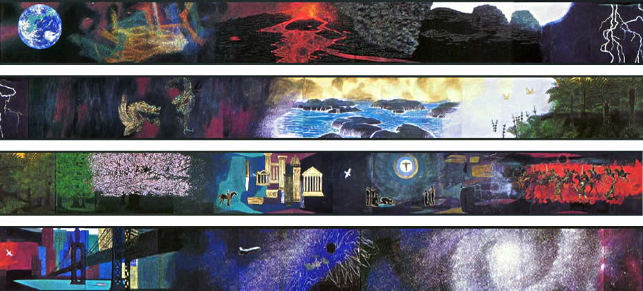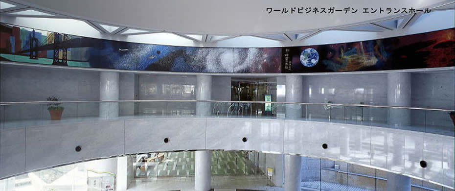 情報発信基地[新都心]海浜幕張駅前・WBG:エントランスホール天井に設置(日本画最大級の作品) 構想5年,作画6年を費やし、イタリア プレトリオ宮殿でオープン、 日本橋高島屋本店での帰朝展を経て WBGの エントランスドームを360°ぐるりと廻る格好で設置されています。
