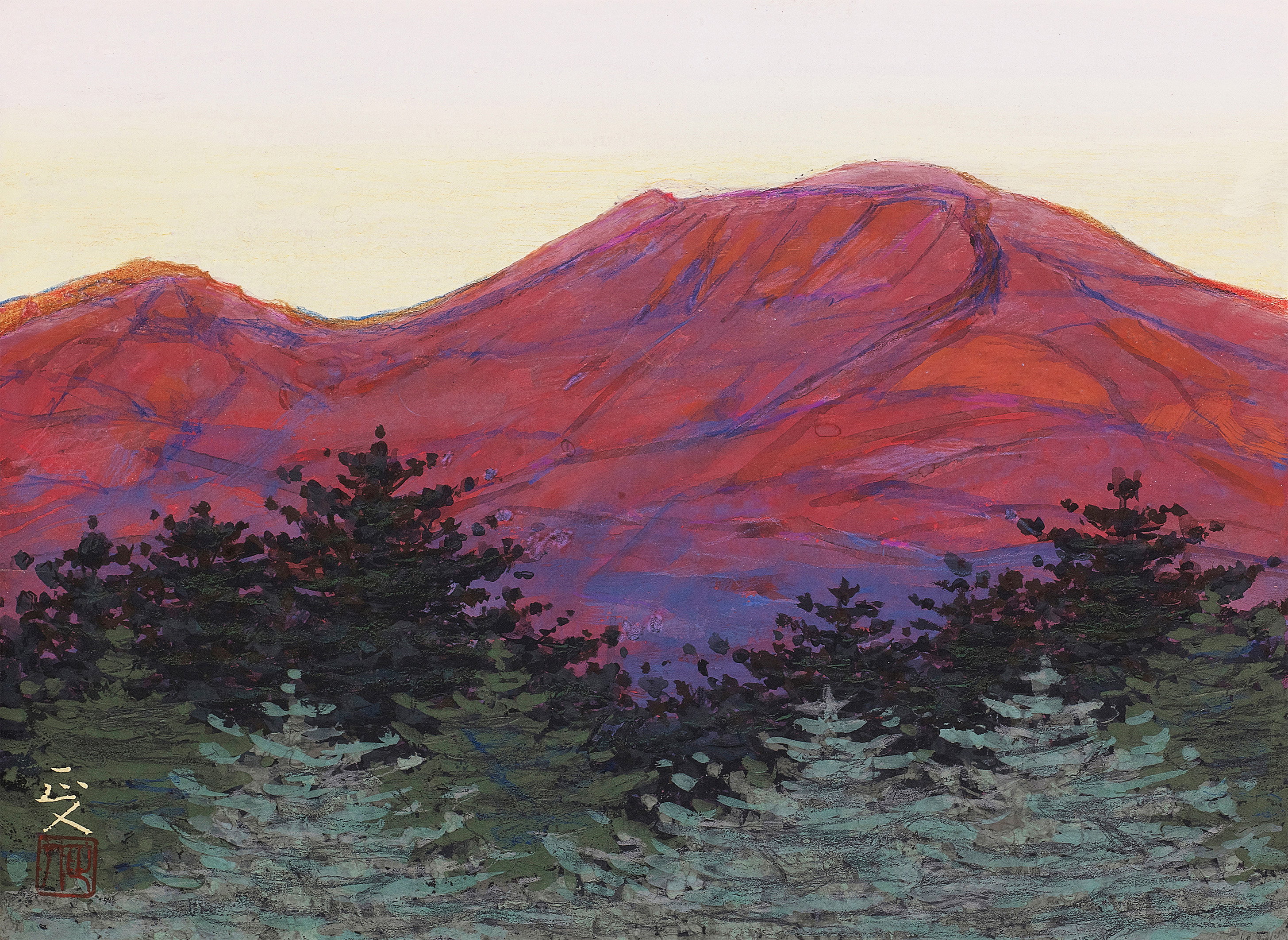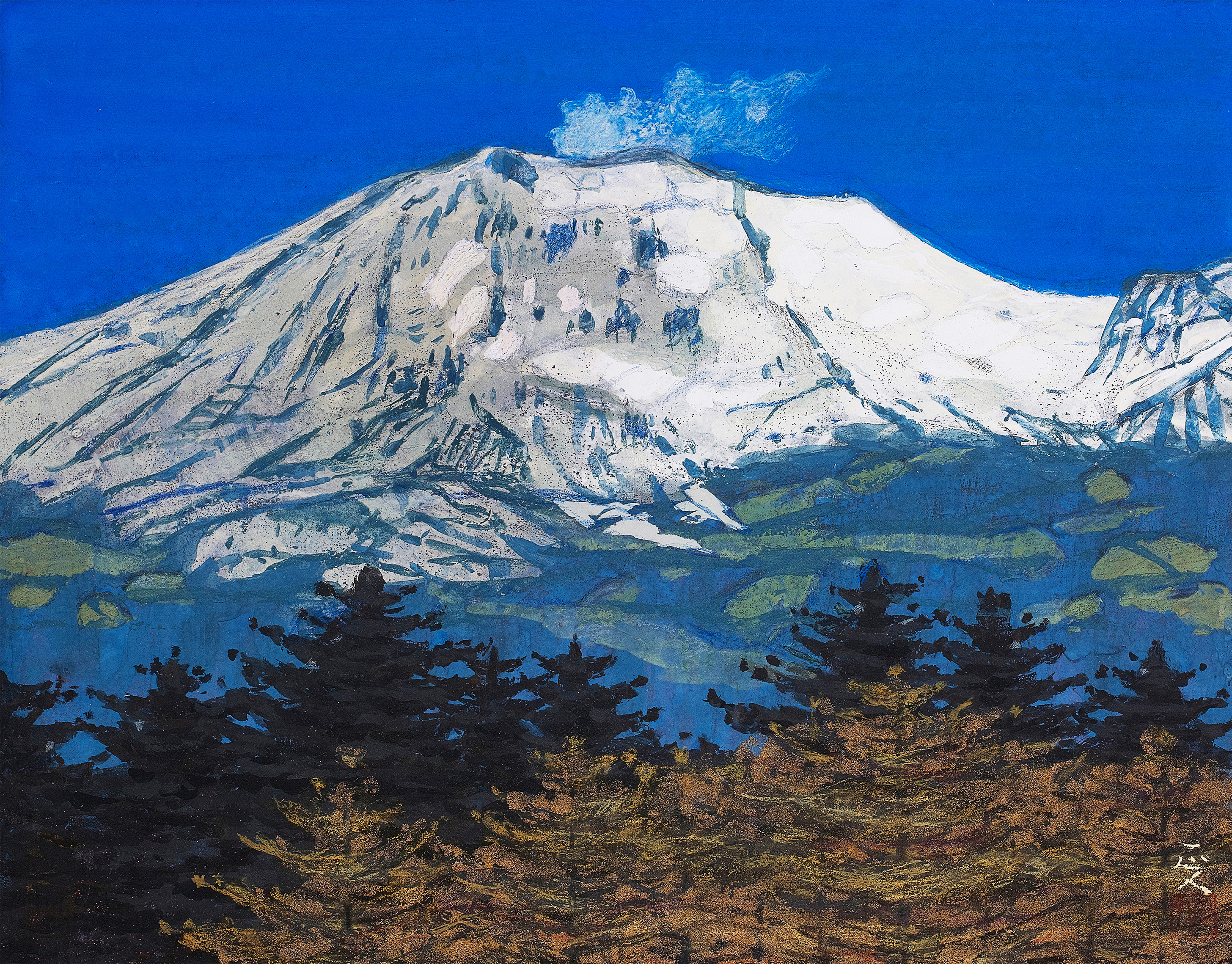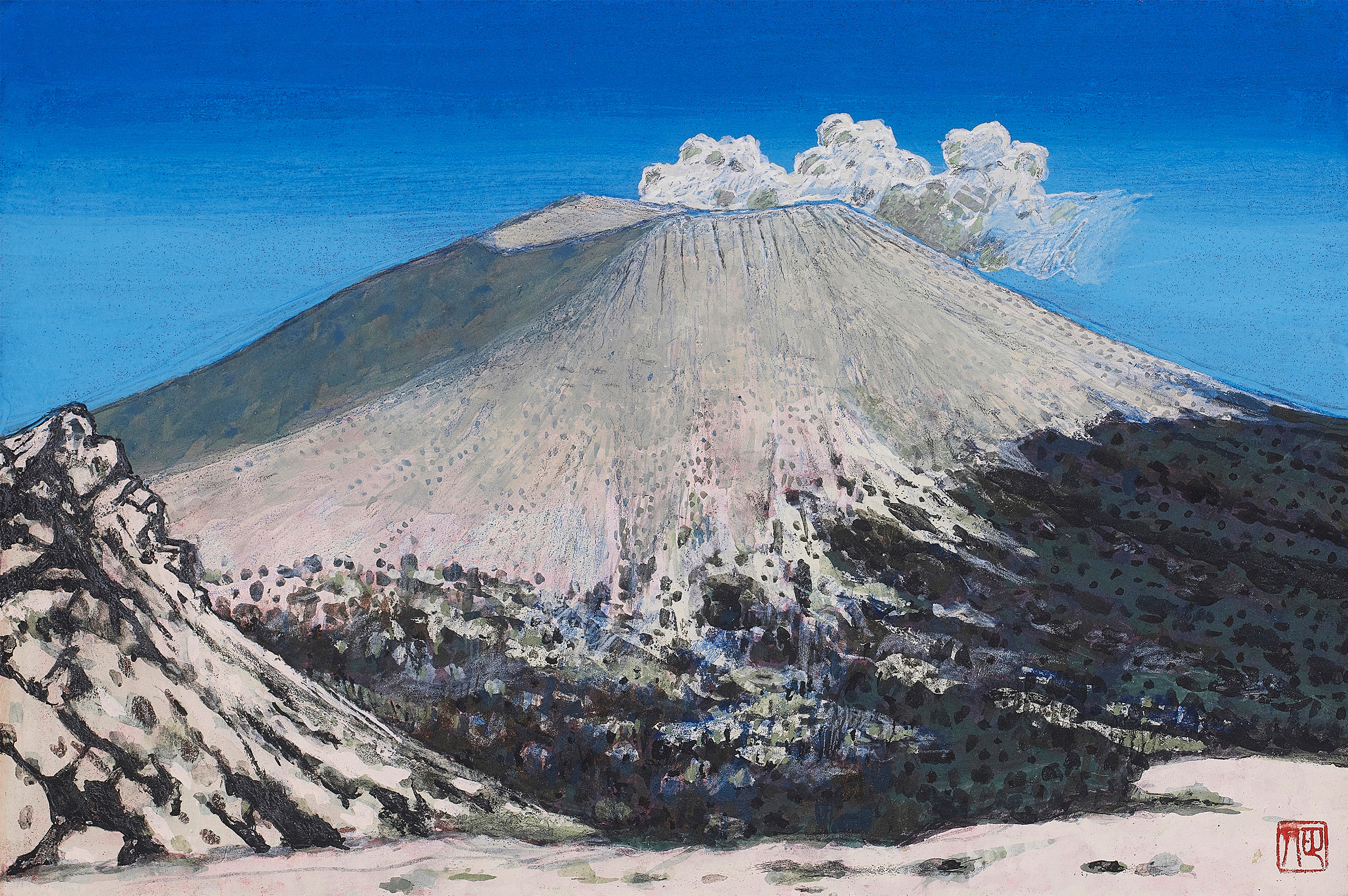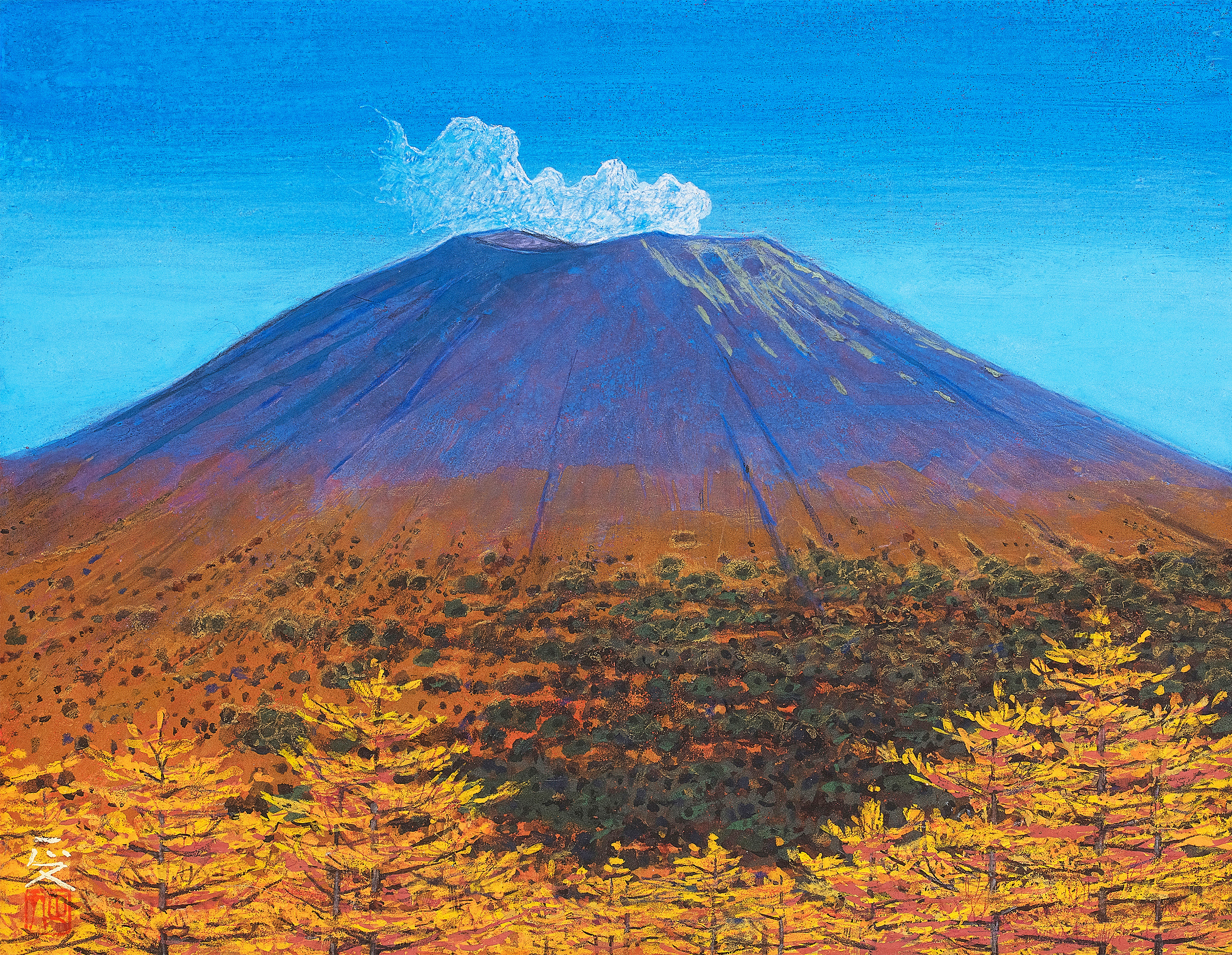 今回の『浅間三十六景展』では、柳沢先生の故郷でもある浅間山が、多彩な姿を見せている。